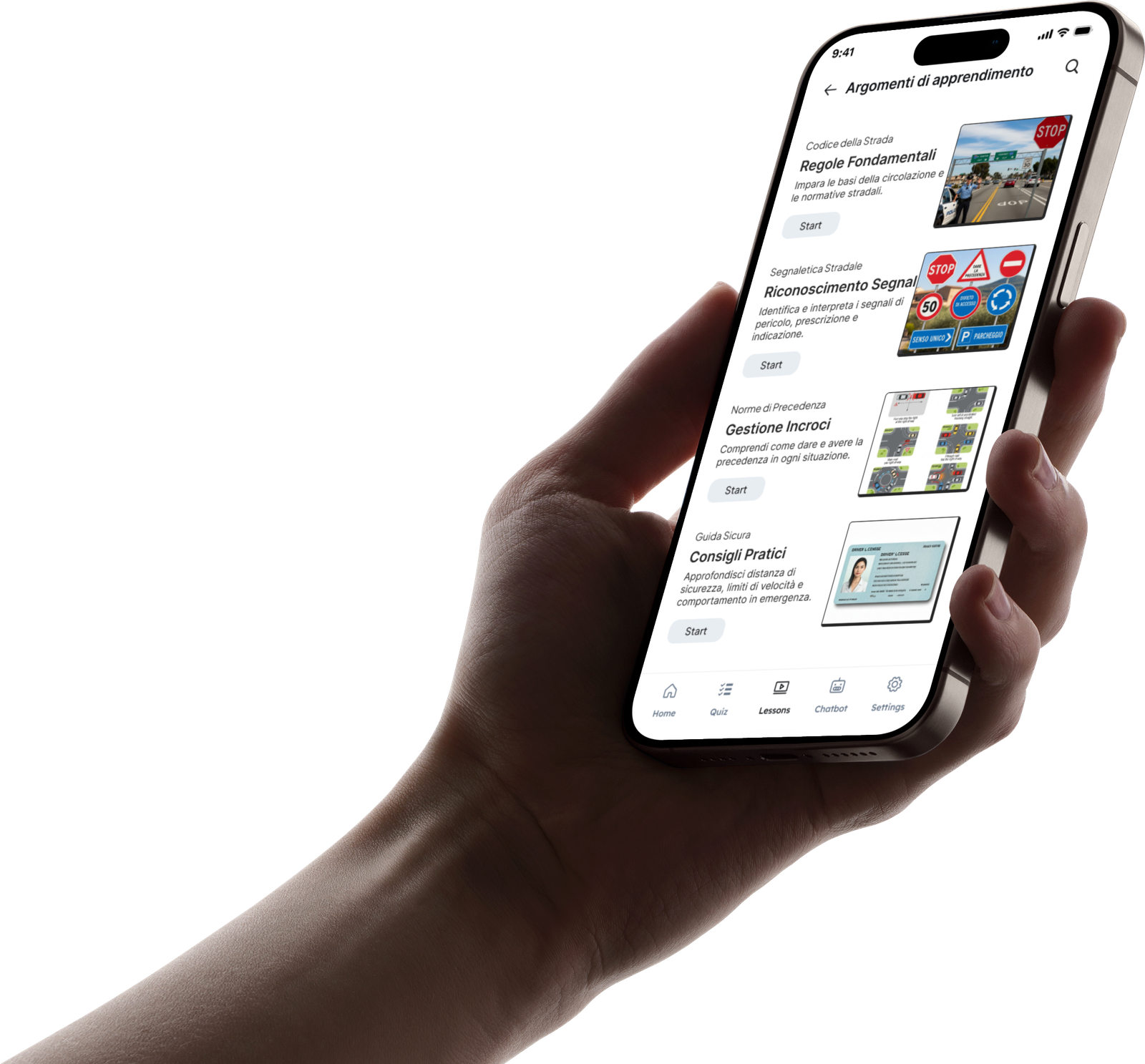 Learn in your own language, understand Italy’s road rules, and prepare with real questions from the exam.